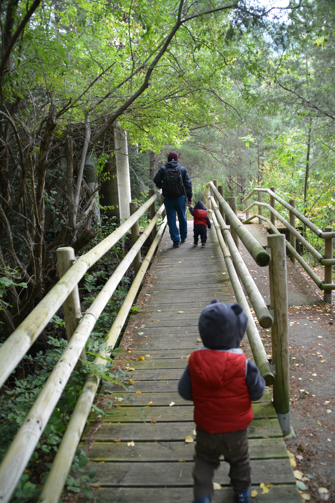 Esta excursión la hicimos con los dos retoños y sin problemas. En este caso íbamos con una mochila portabebés (no la de montaña) y se nos dio de cine a todos. Para los peques caminar por las vías fue muy emocionante.