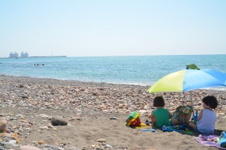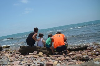 Mientras los peques curioseaban entre las piedras y la arena buscando tesoros (trajimos unos cuantos), desde la pequeña playa podíamos ver a los submarinistas.