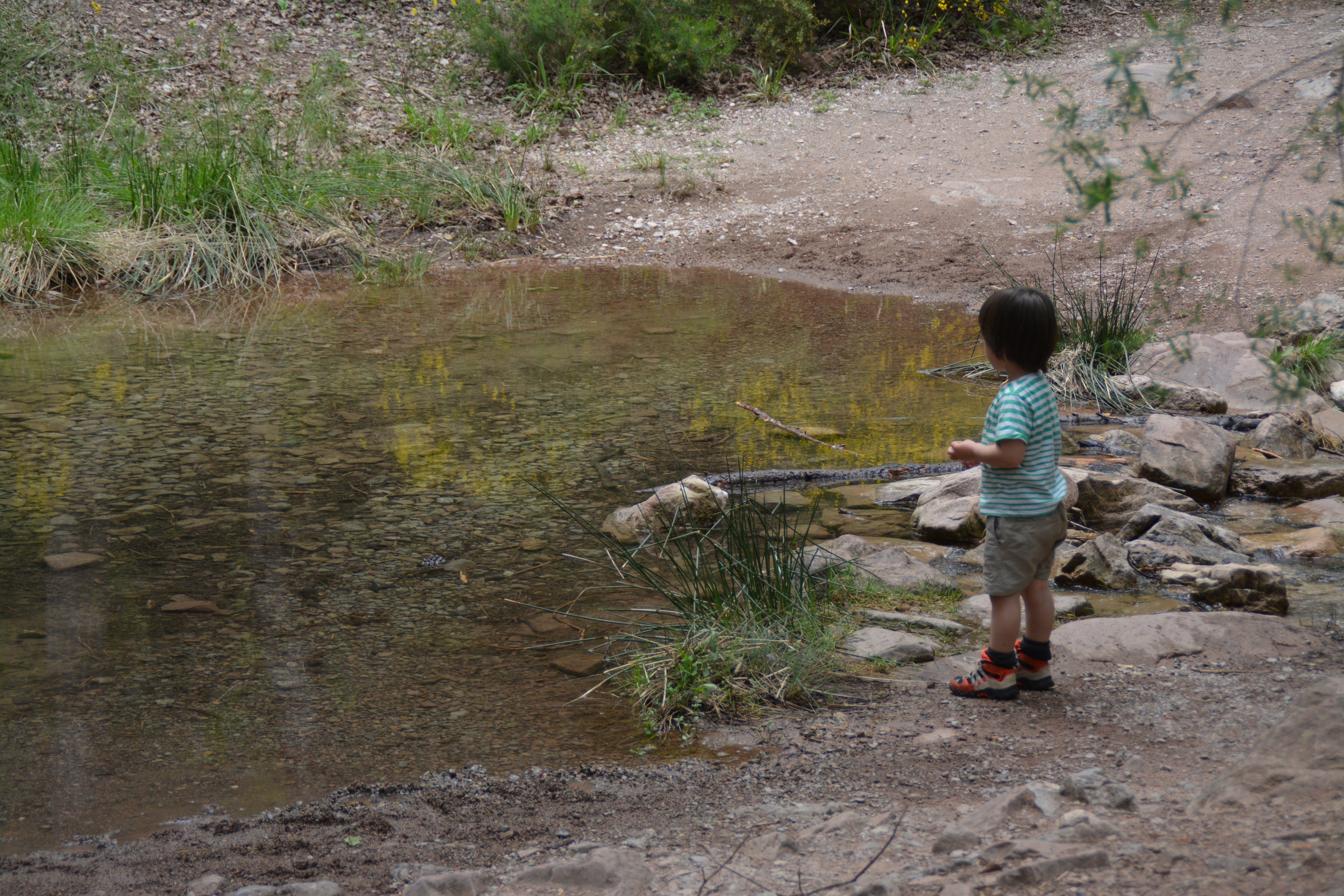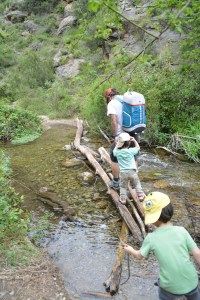 Ha sido una experiencia totalmente de interacción con la naturaleza. Hemos practicado equilibrios  al cruzar por los puentes artesanales que encontrábamos por el camino (en uno de ellos preferí quitarme las botas 😜). Hemos conseguido conectar con la infinidad de insectos con los que topamos. Tuvimos mucha suerte al encontrarnos con un cervatillo. Aun recuerdo ese momento tan mágico para los niños,… bueno, y para nosotros 😜.