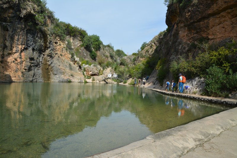 Aparcamos el coche en la entrada de Bolbaite y tras recorrer algunas de sus calles cruzamos el puente que divide el pueblo en dos partes ( el Lugar y la Peña) para llegar al primer punto de parada: el Paraje del Río Sellent (o Bolbaite), un lugar muy bonito para poder parar un rato y contemplar. Disfrutamos de un lago natural y cruzamos un puente y subimos un pequeño desnivel para encontrarnos el Gorgo Caracol (oquedad excavada entra las rocas de unos 15 m de profundidad con estalcatitas en su interior) y el Gorgo Cadena ( con acceso más escondido de aproximadamente 100 m de profundidad que desemboca en una cueva sumergida (SOLO APTO para veteranos en espeleología)) .