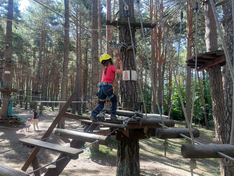 Próximo a Biescas se encuentra el parque de multiaventuras llamado Biescas Aventura. Es un lugar aconsejable para incluir en el viaje para los peques y no tan peques. Consta de 9 circuitos de distintos niveles de dificultad y más de 80 juegos que enlazan habilidad, equilibrio y fuerza.